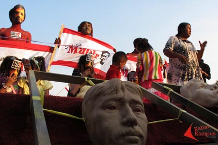 JAKARTA, KabarKampus – Sekitar tiga ratus orang yang tergabung dalam Komite Aksi Solidaritas Untuk Munir (KASUM) menggelar peringatan delapan tahun terbunuhnya munir di depan Istana Negara, Jakarta, Jumat, (07/09). Dalam aksi itu mereka mengingatkan kembali Presiden untuk menyelesaikan kasus Munir secara tuntas.