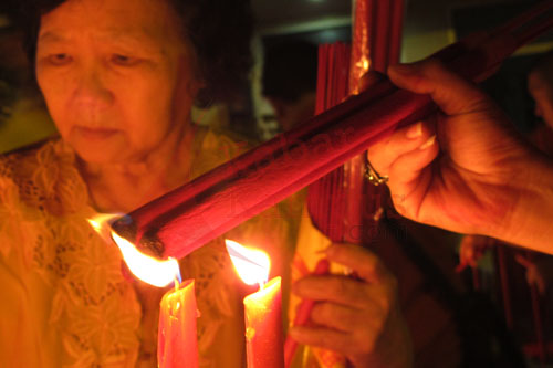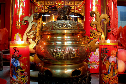Dupa diangkat diarahkan kepada dewa-dewa, patung Budha, ke penjuru mata angin yang membawa rejeki. Asapnya pula memenuhi ruangan. Sesak namun tak mengurangi kekhusukan berdoa.