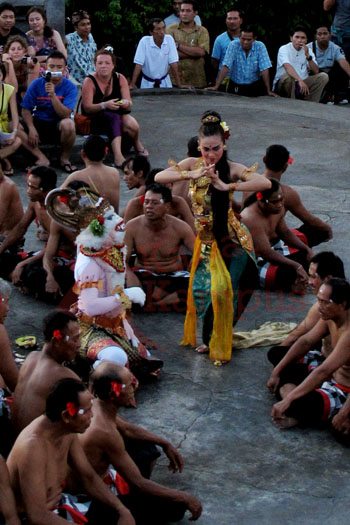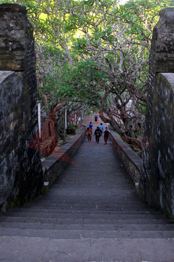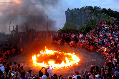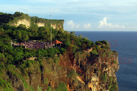 Di tebing atau jurang Uluwatu, wisatawan datang untuk bersenang, orang Hindu Bali untuk bersembahyang.[]