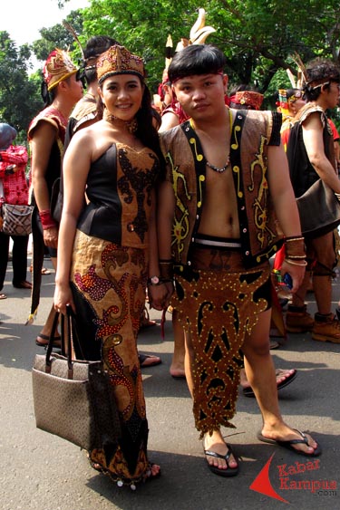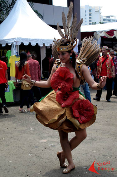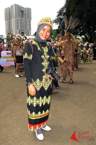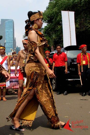 Revolusi busana suku Dayak ini terlihat selama Pekan Budaya Dayak 2013 di Istora Gelora Bung Karno, Jakarta, 27-30 April 2013. Anda ingin mencobanya? []