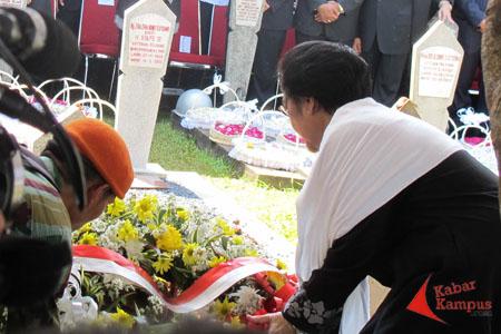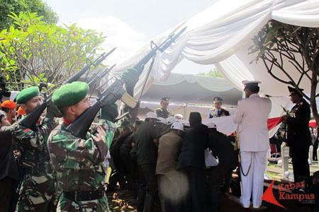 Sejumlah pejabat penting negara hadir dalam prosesi pemakaman Taufiq Kiemas. Dan keluarga terlihat tabah melepas kepergiannya. “Semoga darma bahktinya menjadi suri tauladan bagi kita semua dan arwahnya diterima Allah SWT,” ungkap Presiden Susilo Bambang Yudhoyono ketika memimpin upacara pemakaman di TMP Kalibata, Jakarta, Minggu (09/06/2013).
