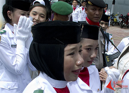 Mata mereka lurus ke depan. Langkah mereka berderap, berirama, dan lurus dalam barisan.
