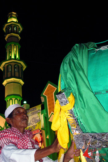 Peserta menggunakan mobil-mobil yang telah dihias sedemikian rupa hingga tampak menarik. Ada yang membuat miniatur masjid, patung unta, dan masih banyak lagi. Warga yang telah menunggu sejak usai sholat Isya berjejer di tepi jalan-jalan utama kota Singkawang.