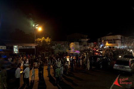 Pelaksanaan pawai takbir Singkawang berjalan tertib dan lancar. Usai pawai para peserta banyak yang basah kuyup. []