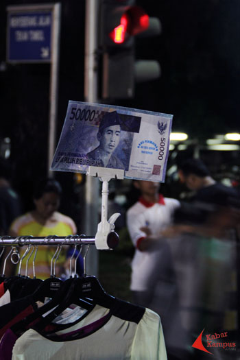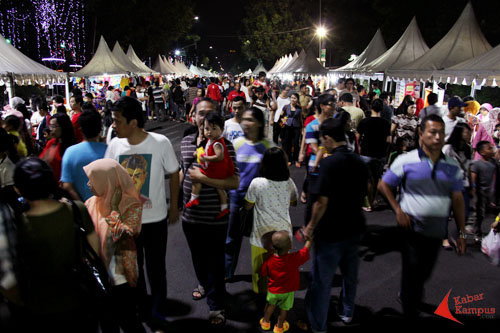 Ruas jalan Merdeka Selatan ditutup sejak sore. Sekira pukul 19.30 WIB, ribuan orang mulai memadati “Kaki Lima Night Market”. Dengan posisi tenda di tepi jalan, warga dapat melenggang tanpa perlu berdesak-desakan.