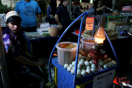 Siapa bilang pedagang kaki lima tidak bisa diatur? Ungkapan itu tak sepenuhnya benar. Buktinya di “Kaki Lima Night Market” para pedagang berjejer rapi dan pengunjung bisa berbelanja dengan nyaman.