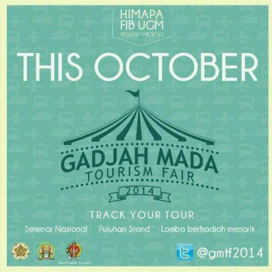 Himpunan Mahasiswa Pariwisata Fakultas Ilmu Budaya UGM akan menggelar acara Gadjah Mada Tourism Fair (GMTF) pada Sabtu, 18 Oktober 2014. Selain seminar pariwisata, acara yang bertema ‘Track Your Tour’ ini juga akan menghadirkan expo berisi puluhan stand, sejumlah lomba dan pertunjukan seni serta hiburan.