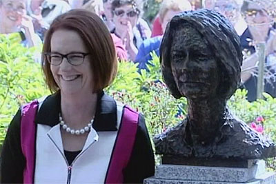 Gillard memuji hasil karya seniman asal Melbourne Peter Nicholson yang mengukir patung dirinya tersebut.