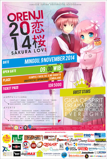 Himpunan Mahasiswa Jurusan Bahasa dan Sastra Jepang Universitas Diponegoro menggelar “Original Event of Japan in Indonesia (ORENJI) 2014. Festival Budaya Jepang ini mengusung tema “Koizakura” yang berarti festival musim semi.