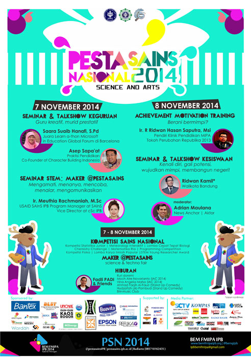 FMIPA IPB menggelar acara Pesta Sains Nasional (PSN) 2014. Acara ini merupakan ajang kompetisi sains nasional yang menghadirkan 2000 siswa-siswi SMA/sederajat dan 300 guru pendamping.