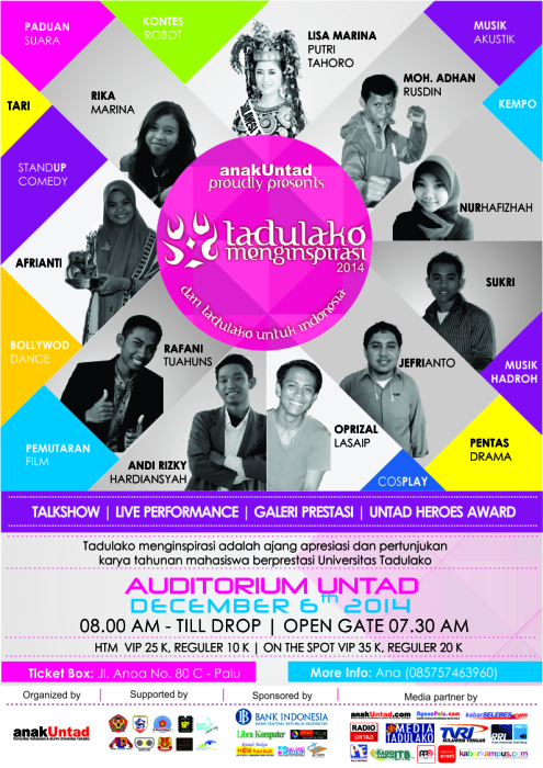 Hello anak Untad… Bingung hari Sabtu nanti mau kemana ? Hmm, mending kamu gabung aja dalam acara Tadulako Menginspirasi 2014.