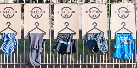 Street Store, yang pertama kali dibuka di Cape Town, Afrika Selatan, pada awal tahun 2014 mendorong orang-orang untuk memberikan pakaian ke toko ini. Nantinya diharapkan mereka yang membutuhkan bisa memilih apa yang mereka inginkan dan butuhkan.