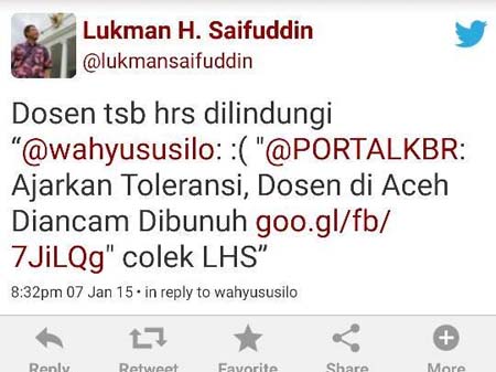 Hari Kamis, Menteri Agama Indonesia Lukman Hakim Saifuddin memberikan pernyataan soal ini lewat Twitter. Mengaju kepada sebuah berita mengenai Sari, Menteri Agama memberikan cuitan