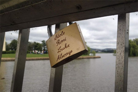 Berdasarkan tradisi, pasangan harus mengukir nama mereka di gembok dan kemudian menambatkannya di jembatan dimana mereka akan melemparkan kuncinya ke air yang mengalir dibawahnya.