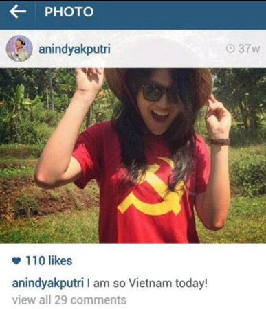Foto bergambar palu arit tersebut, diunggah di akun Instagram @anindyakputri, Jumat (20/02/2015). Di bawah foto tersebut tertulis “I So Vietnam Today”.