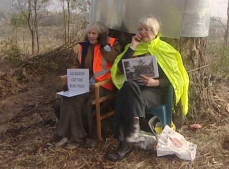Seorang perempuan Australia berusia 91 tahun merantai dirinya pada sebuah pohon besar di wilayah kota Ararat, Victoria, untuk memprotes penebangan pohon yang dilakukan untuk pelebaran jalan.