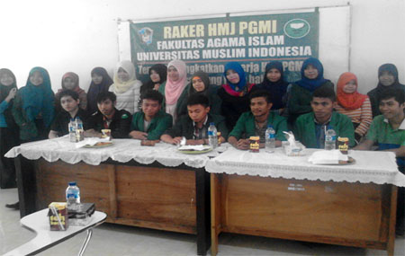 MAKASSAR, KabarKampus – Himpunan Mahasiswa Jurusan Pendidikan Guru Madrasah Ibtidaiyah (HMJ PGMI) Fakultas Agama Islam Universitas Muslim Indonesia (UMI) menggelar Rapat Kerja Himpunan di gedung Fakultas Agama Islam, Kampus II UMI jalan Urip Sumoharjo, Minggu (12/04/2015). Kegiatan ini mengusung tema “Meningkatkan Kinerja HMJ PGMI ke Arah yang Lebih Baik”.