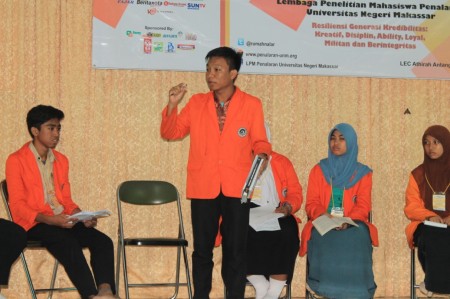 MAKASSAR, KabarKampus – Lembaga Penelitian Mahasiswa Penalaran Universitas Negeri Makassar (LPM Penalaran UNM) mengadakaan Pelatihan Metodologi Penelitian (PMP) di LEC Athirah Antang Makassar. Pelatihan ini diikuti oleh sebanyak 74 peserta dan digelar selama empat hari dari tanggal 09 – 12 April 2015.