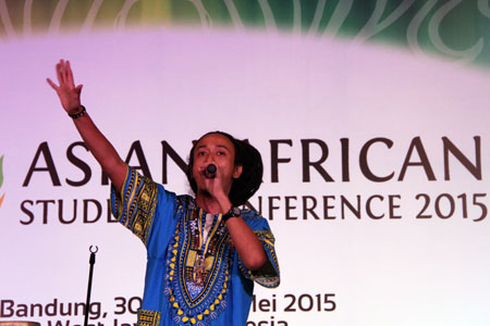 BANDUNG, KabarKampus – Duta Reggae Indonesia, Ras Muhamad membuka digelarnya Konferensi Mahasiswa Asia Afrika di Hotel Papandayan, Bandung, Rabu malam, (29/04/2015). Ia tampil untuk mengisi acara malam selamat datang dan pertunjukkan Seni Asia Afrika.