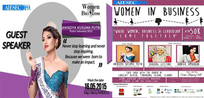 AIESEC Universitas Brawijaya mengadakan sebuah acara bertajuk Women In Business pada hari Sabtu 16 Mei 2015, di gedung Widyaloka, Universitas Brawijaya, Malang. Acara ini menargetkan sebanyak peserta sekitar 200 orang dan tidak hanya ditujukan bagi kaum hawa saja tetapi juga kaum adam.