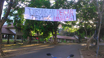 MAKASSAR, KabarKampus – Mahasiswa Fakultas Teknik Universitas Hasanuddin (FT Unhas) mendesak Dr Wahyu H Piarah MMS, Dekan FT Unhas turun dari jabatannya. Desakan tersebut sebagai bentuk kekecewaan mahasiswa atas sanksi skorsing kepada mahasiswa yang diberikan dekan karena menggelar kegiatan “ospek” bagi mahaiswa baru di FT Unhas.