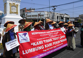 YOGYAKARTA, KabarKampus – Aktivis Solidaritas Perempuan Kinasih bersama komunitas petani dan pedagang pasar menggelar aksi Peringatan Hari Pangan Sedunia yang jatuh pada tanggal 16 Oktober. Aksi ini digelar dengan membagikan makanan lokal seperti Tiwul, Getuk, Singkong Rebus pada pengendara sebagai kampanye konsumsi makanan lokal.