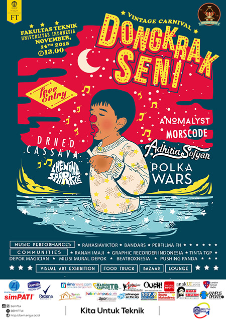 Dongkrak Seni UI 2015 akan diadakan tanggal 14 November 2015 di Fakultas Teknik Universitas Indonesia, Depok. Open gate dimulai pukul 14.00 dan FREE ENTRY!!!!
