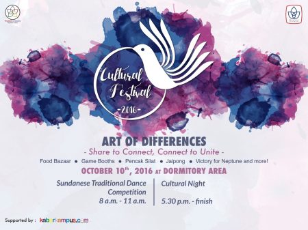 Cultural Festival 2016 dilaksanakan di President University Student Housing (Perumahan Mahasiswa Universitas Presiden) pada tanggal 10 Oktober 2016.