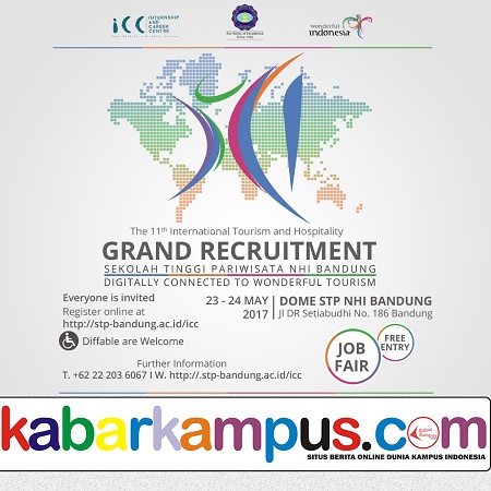 Sejalan dengan hal tersebut di atas, The 11th International Tourism and Hospitality Grand Recruitment 2017 dengan tema “Digitally Connected To Wonderful Tourism” ini akan berlangsung pada tanggal 23 dan 24 Mei 2017 di DOME STP NHI Bandung, Jl. Dr. Setiabudhi No. 186 Bandung. Acara ini akan dibuka secara resmi oleh Menteri Pariwisata Republik Indonesia Arief Yahya, Deputi Bidang Pengembangan Kelembagaan Kepariwisataan Kemenpar RI, dan Ketua STP NHI Bandung