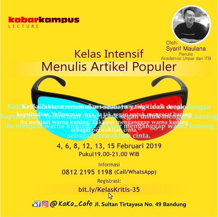 Syarif Maulana yang juga mengajar di ITB dan Unpar ini, akan menunjukkan cara menulis artikel populer yang baik. Pada Kelas Intensif ini, peserta tidak hanya akan ditunjukkan cara menulis artikel populer yang gampang dicerna, memikat hati pembaca dan redaktur media, namun juga semua modal keterampilan untuk membuatnya tetap punya kedalaman. Materi-materi yang akan peserta terima antara lain: