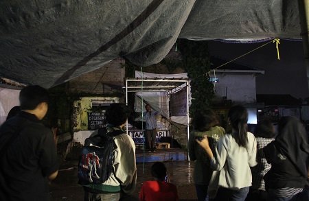 BANDUNG, KabarKampus – Pemuda dan warga Bandung yang mengatasnamakan Rakyat Golput menggelar Panggung Golput di kawasan reruntuhan rumah warga Taman Sari, Bandung, Sabtu malam, (13/04/2019). Di kawasan rumah yang telah digusur tersebut mereka berorasi secara bergantian, sekaligus mendeklarasikan diri Golput.