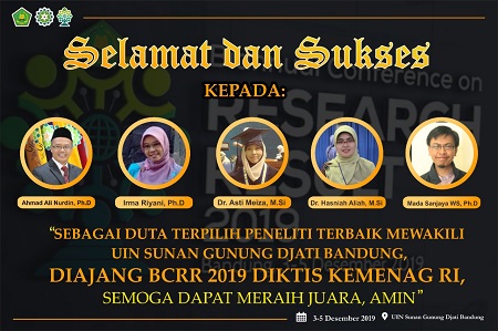 BANDUNG, KabarKampus – Lima dosen UIN Sunan Gunung Djati (SGD) Bandung masuk nomine peneliti terbaik Biannual Conference on Research Result (BC Research Result) 2019. Selain itu mereka juga ditetapkan sebagai duta pada ajang yang digelar di Gedung Anwar Musaddad dari tanggal 3-5 Desember 2019.