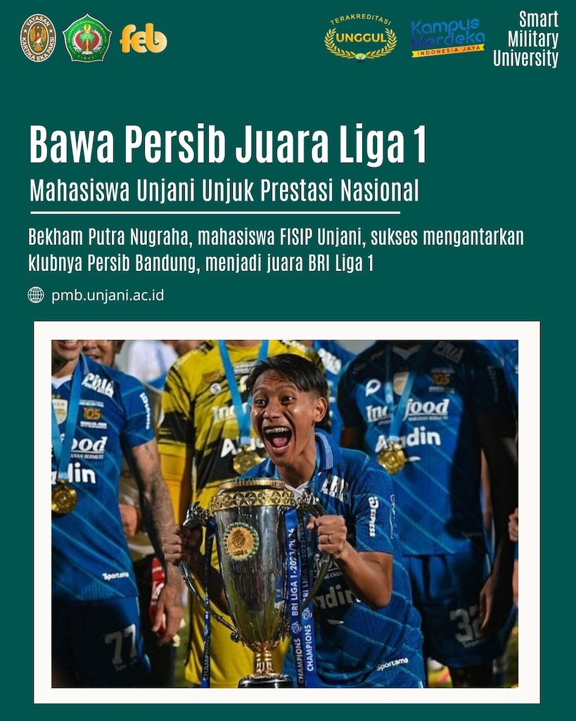Kabar membanggakan datang dari Bekham Putra Nugraha, mahasiswa Fakultas Ilmu Sosial dan Ilmu Politik (FISIP) Universitas Jenderal Achmad Yani (Unjani), yang sukses mengharumkan nama almamater dan bangsa. Di bulan Mei 2025, Bekham turut mengantarkan klubnya, Persib Bandung, menjadi juara BRI Liga 1 Indonesia, kompetisi sepak bola tertinggi di Tanah Air.