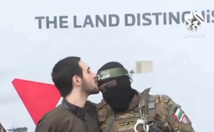 Poto yang menjasdi ikonik seantero dunia dan media perlawanan kembali meraih kemenangan strategis dalam perang narasi global. Penyerahan tawanan secara dramatis memperkuat citra positif kelompok perlawanan di mata publik internasional. Salah satu momen ikonik adalah ketika seorang tawanan Israel mencium kening tentara Hamas—simbol kuat yang menantang propaganda Tel Aviv yang selama ini melabeli Hamas sebagai kelompok teroris. Video tersebut memicu reaksi besar di media sosial, melemahkan strategi komunikasi Israel, dan membuka babak baru dalam perang opini publik.