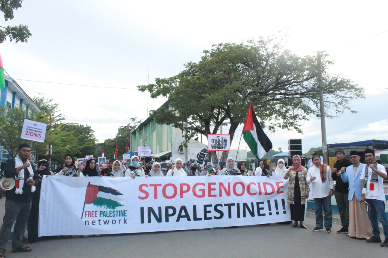 Matahari baru mulai menampakkan diri ketika ribuan massa Free Palestine Network (FPN) memenuhi jalan-jalan di Kota Majene, Sulawesi Barat, sambil membawa dua spanduk besar bertuliskan “Stop Genocide in Palestine!!!” dan “USA, UK, Germany, France, Stop Arming Israel!”, Sabtu pagi (28/6/2025).