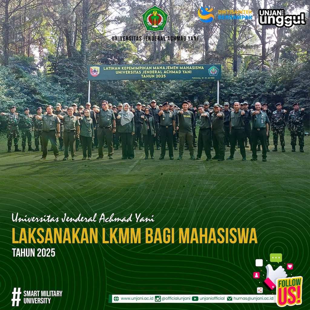 BADNUNG BARAT, KabarKampus – Sebanyak 103 mahasiswa Universitas Jenderal Achmad Yani (UNJANI) yang tergabung dalam Unit Kegiatan Mahasiswa (UKM) dan Organisasi Kemahasiswaan (Ormawa) mengikuti Latihan Kepemimpinan Manajemen Mahasiswa (LKMM) yang digelar selama empat hari, mulai Selasa (22/7) hingga Jumat (25/7) di Pusat Pendidikan Kavaleri (Pusdikkav), Padalarang, Kabupaten Bandung Barat. Kegiatan ini menjadi ajang pembentukan karakter dan penguatan kapasitas kepemimpinan mahasiswa UNJANI dalam suasana kedisiplinan dan semangat kebersamaan.