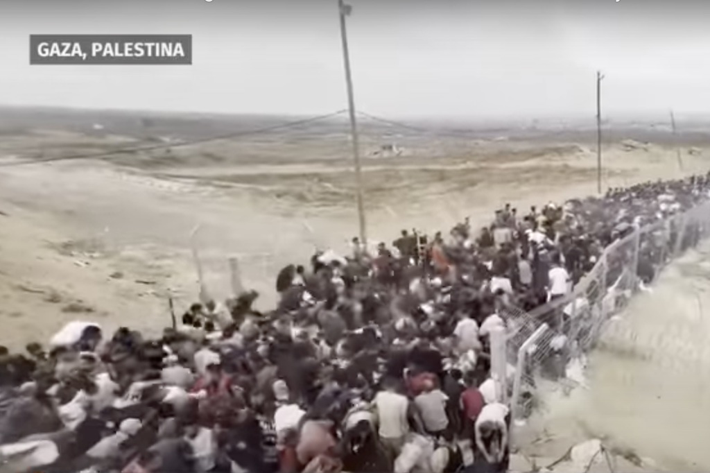 Rakyat gaza antri menanti bantuan sembari dihujani peluru. (Foto: Tangkapan layar Liputan 6 SCTV)
