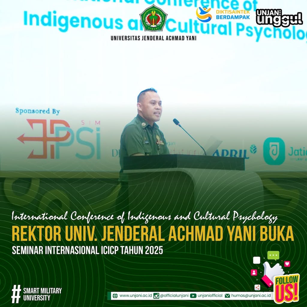 Bertempat di Gedung Auditorium Universitas Jenderal Achmad Yani (UNJANI), seminar International Conference of Indigenous and Cultural Psychology (ICICP) resmi dibuka pada awal 4-6 Agustus 2025. Acara ini dipimpin langsung oleh Rektor UNJANI, Prof. Dr. Agus Subagyo, S.IP., M.Si., dan menjadi momen istimewa bagi dunia akademik karena mempertemukan para pakar, peneliti, dan praktisi dari berbagai perguruan tinggi ternama. ICICP 2025 merupakan kolaborasi strategis antara Fakultas Psikologi, Fakultas Kedokteran, dan Fakultas Ilmu Sosial dan Ilmu Politik (FISIP) UNJANI dengan Fakultas Psikologi Universitas Padjadjaran serta Fakultas Psikologi Universitas Esa Unggul.