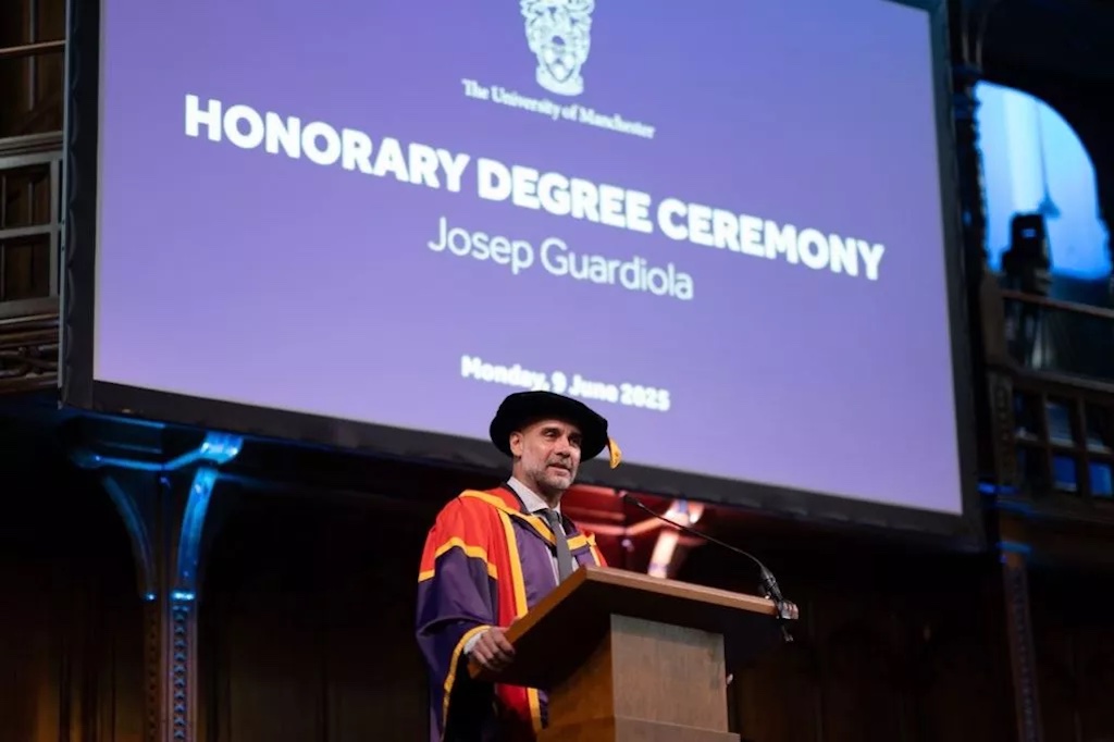 Pelatih Manchester City, Josep ‘Pep” Guardiola, memanfaatkan momen penerimaan gelar doktor kehormatan (honoris causa) dari Universitas Manchester pada Senin (9/6) untuk menyuarakan keprihatinan mendalam terhadap krisis kemanusiaan di Gaza, Palestina.