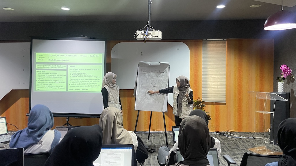 Selama pelatihan, peserta tidak hanya mendengarkan teori, tapi langsung diajak mempraktikkan cara menyusun surat resmi, membuat dokumen organisasi, hingga menyusun Rencana Anggaran Biaya (RAB). Tak jarang, suasana pelatihan berubah menjadi sesi tanya-jawab spontan ketika peserta kebingungan mencari format surat yang tepat atau menentukan prioritas dalam anggaran kegiatan.