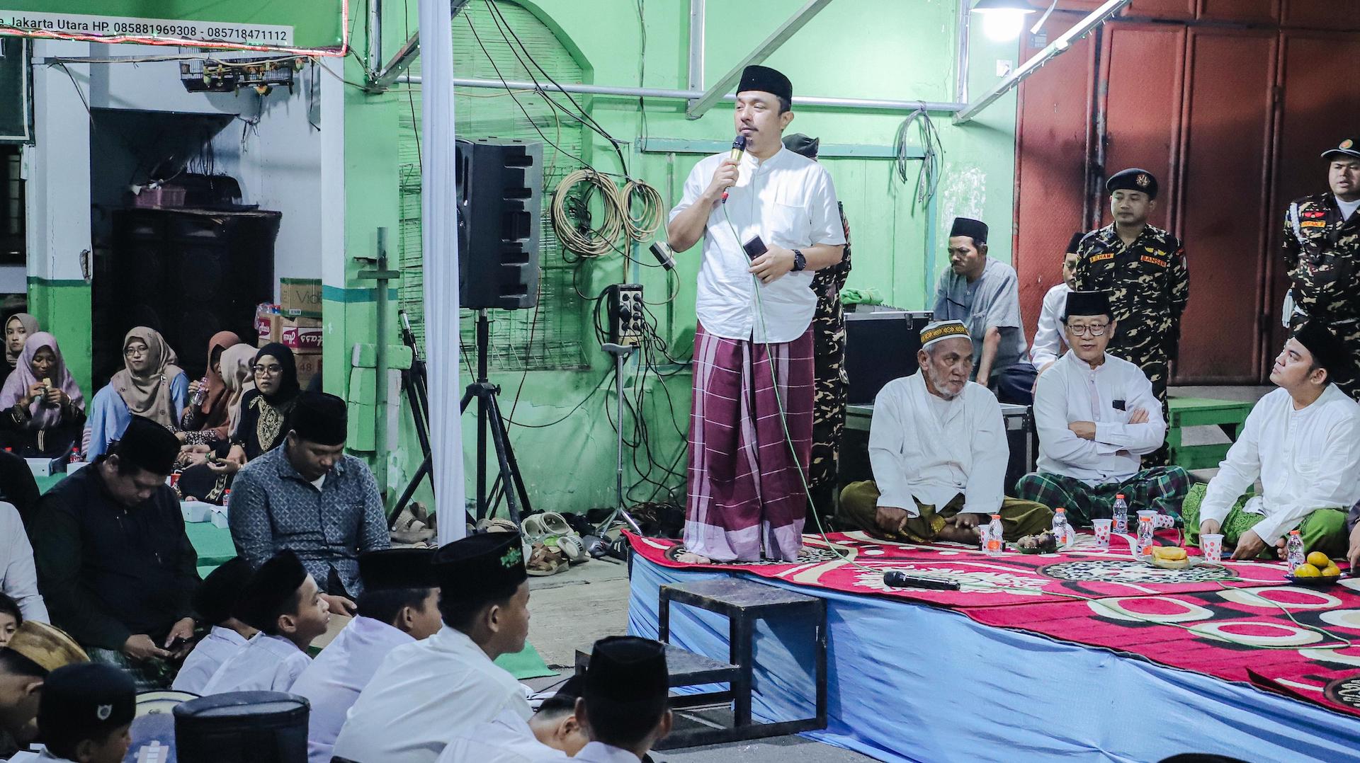 Gus Dhohir Farisi menyampaikan epilog penutup rangkaian peringatan Isra Mi’raj Rasulullah SAW yang diselenggarakan DARUL FURQAN di Madrasatul Quran Nur Hasanah, Kecamatan Koja, Jakarta Utara, Kamis (15/1).