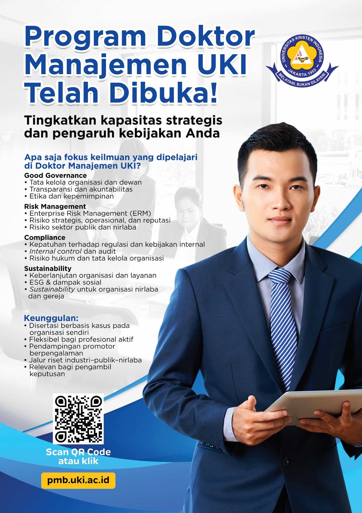 Universitas Kristen Indonesia (UKI) resmi meluncurkan Program Studi Doktor Manajemen sebagai bagian dari penguatan pengembangan akademik jangka panjang kampus, Jumat (6/2). Kehadiran program doktor ini diharapkan mampu melahirkan sumber daya manusia unggul yang memiliki kompetensi tata kelola organisasi modern, sekaligus mendorong lahirnya riset yang berdampak nyata bagi masyarakat.